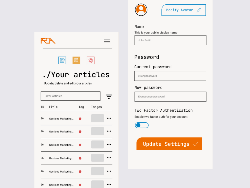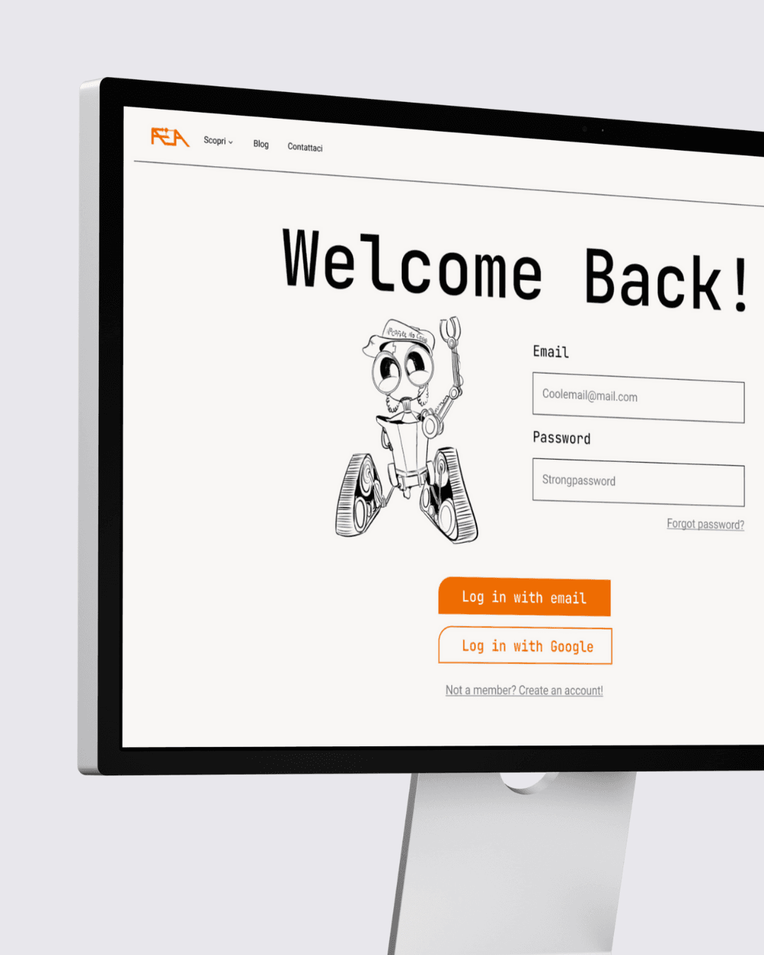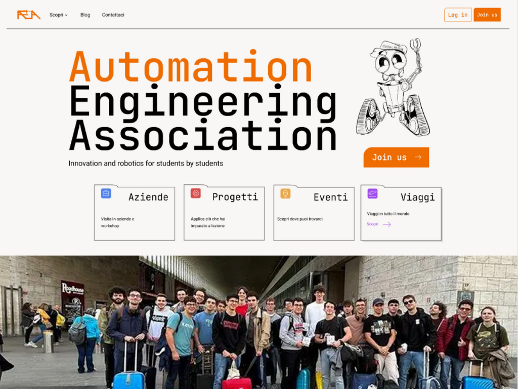 A bold yet friendly identity in orange and black, giving a robotics association a mascot and a voice.
