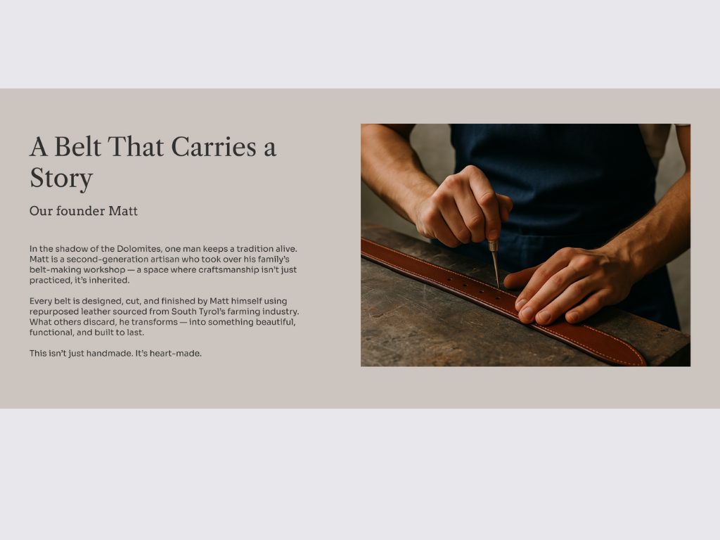 Bridging tradition and innovation with an ecommerce for recycled leather belts, handmade in South Tyrol.